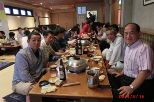 18時からOB20名弱で近くのちゃんこ屋「奄美富士」でOB懇親会を行い、25期から14期までの皆さんで楽しく懇親を深めました。幹事をしてくれた 33期細川勝己さんありがとうございました。