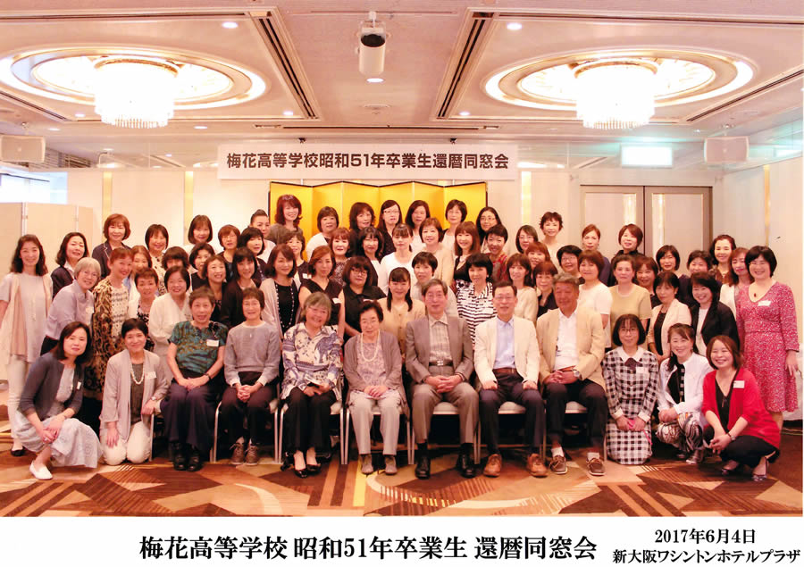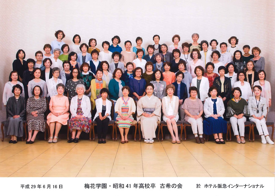 2017年6月4日(日)新大阪ワシントンホテルプラザにて 恩師7名〈市川・大野〔旧 新堂〕・金子・木村(定)・澤田・吉田・吉見〉、海外、遠方からも参加で総勢72名で開催しました。