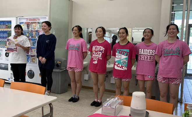 | 梅花中高チアリーディング部の挨拶 | チアリーディング部の演技を見学 |