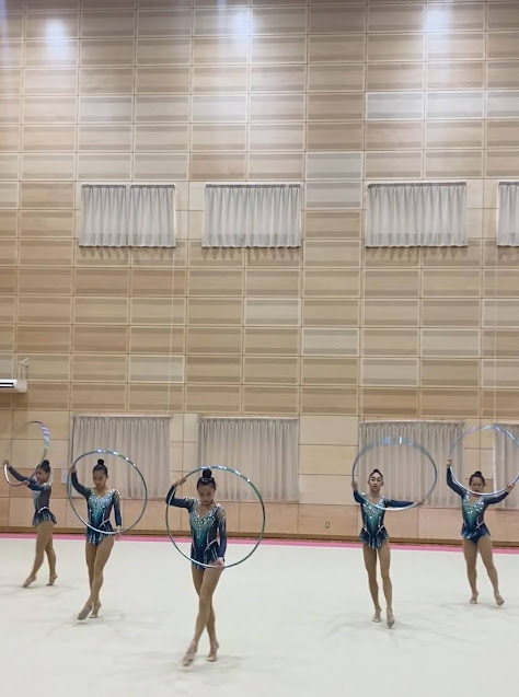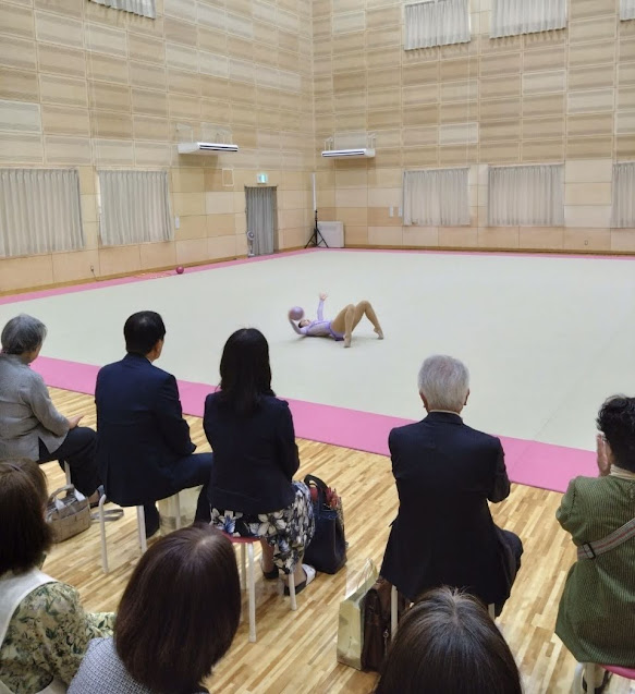 天井の高い第2体育館で 新体操の演技を見学 |