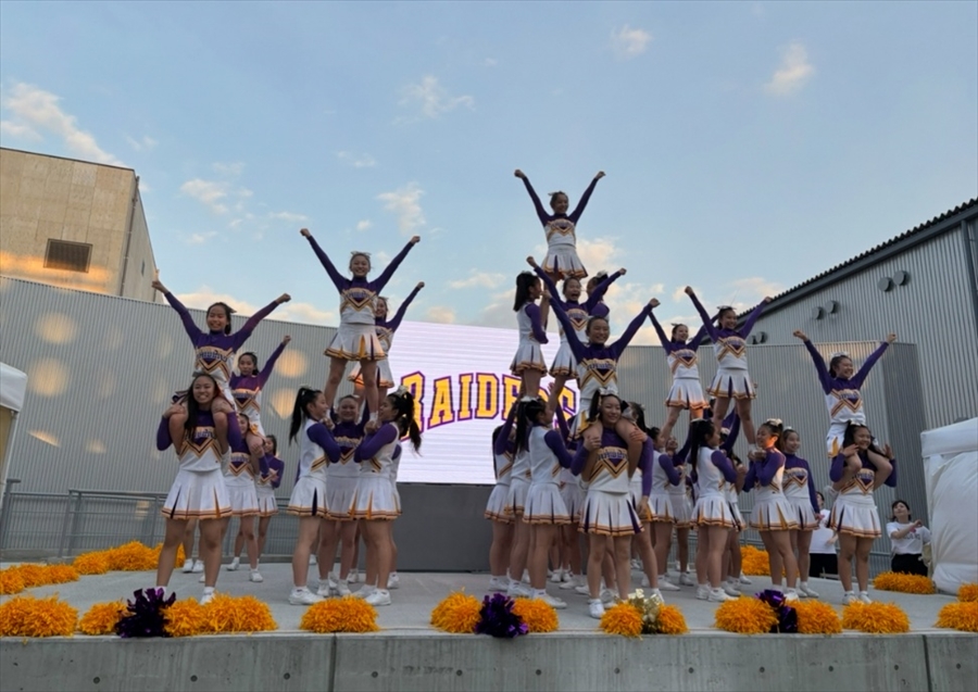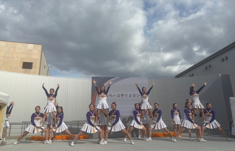 特設開場に37名のチアリーディング部の生徒達が演技をすると大きな拍手。