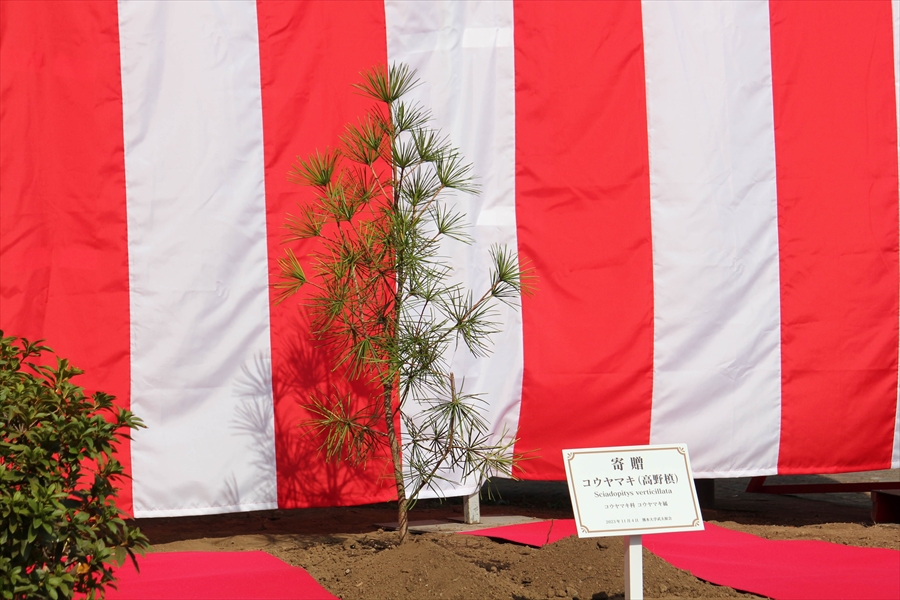 | 植樹式の様子 | 新たに植樹された「コウヤマキ」 |