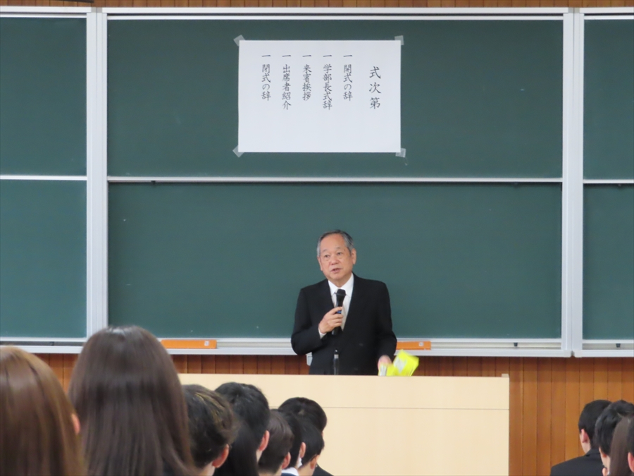 村田武夫原会会長も来賓として出席され、文学部新入生175人、法学部新入生211人に対し、お祝いの言葉を贈られました。