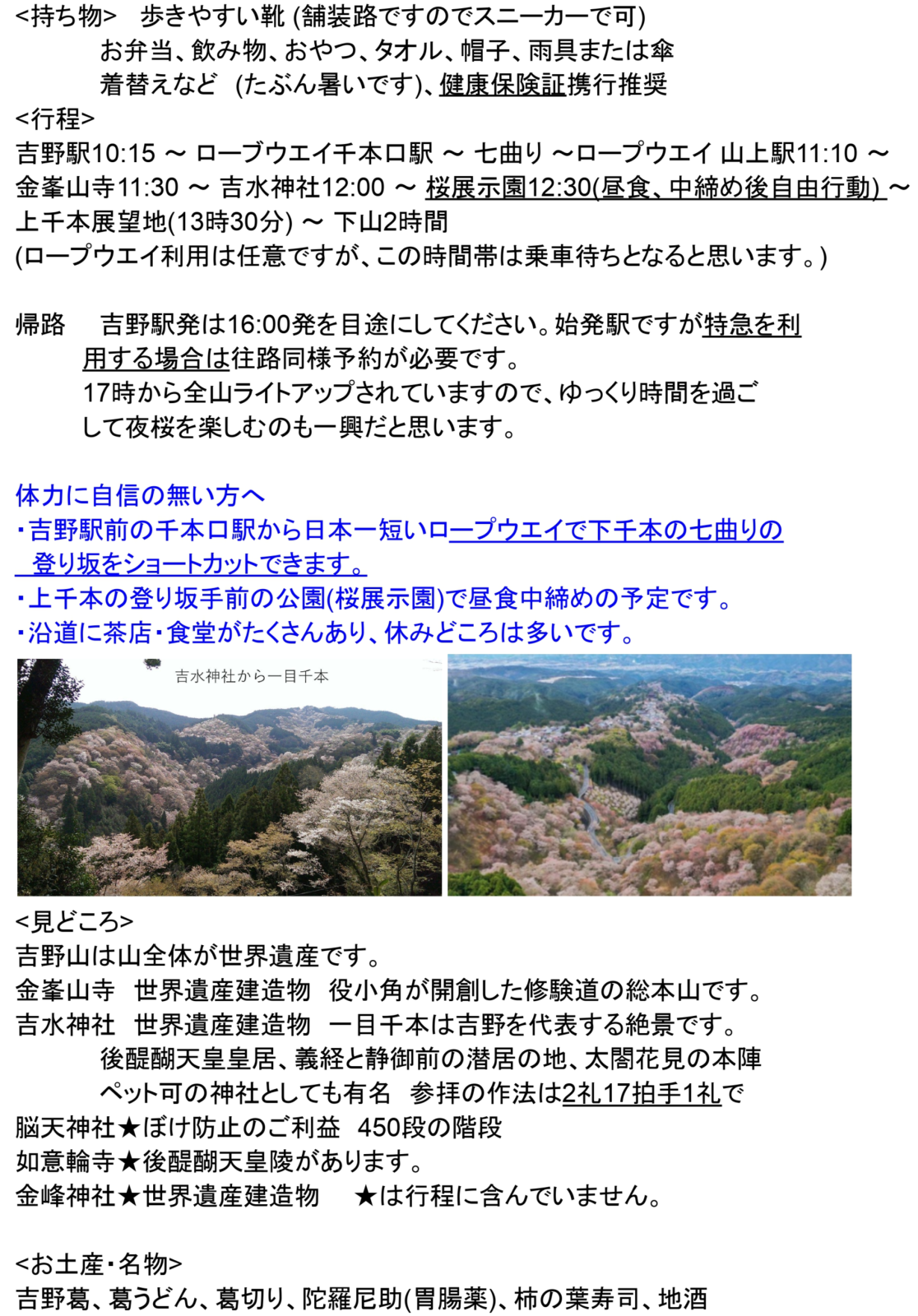 | 集合 | 近鉄飛鳥駅 改札付近 午前10時 | |