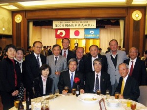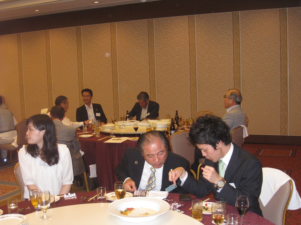交流会は、講演会の静けさを打ち破るかのように、一転して歓喜の空間と化し、各テーブルとも昔日の思い出に花が咲き、お互いの近況を語らい健康を祝し、果ては大学の更なる飛躍に談論風発・・・、間をおいては、彼方此方で仲間や先生と記念写真を撮る人たち、名刺を片手に知己を得る人たち、これを機に同期会を約す人たち、各学部間の垣根もなく様々な風景が演じられました。食事も酒も豊富に並べられ、流れるように喉元を通り過ぎていきました。