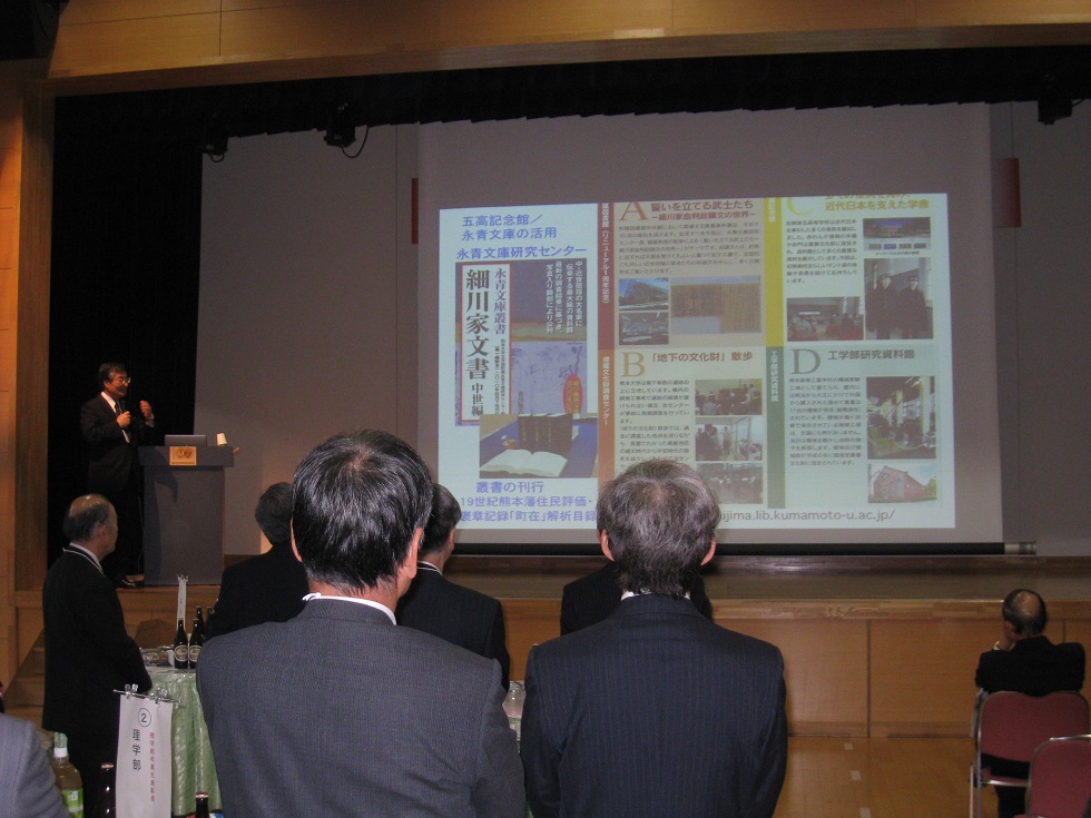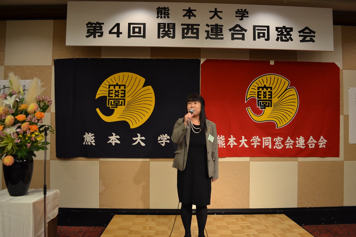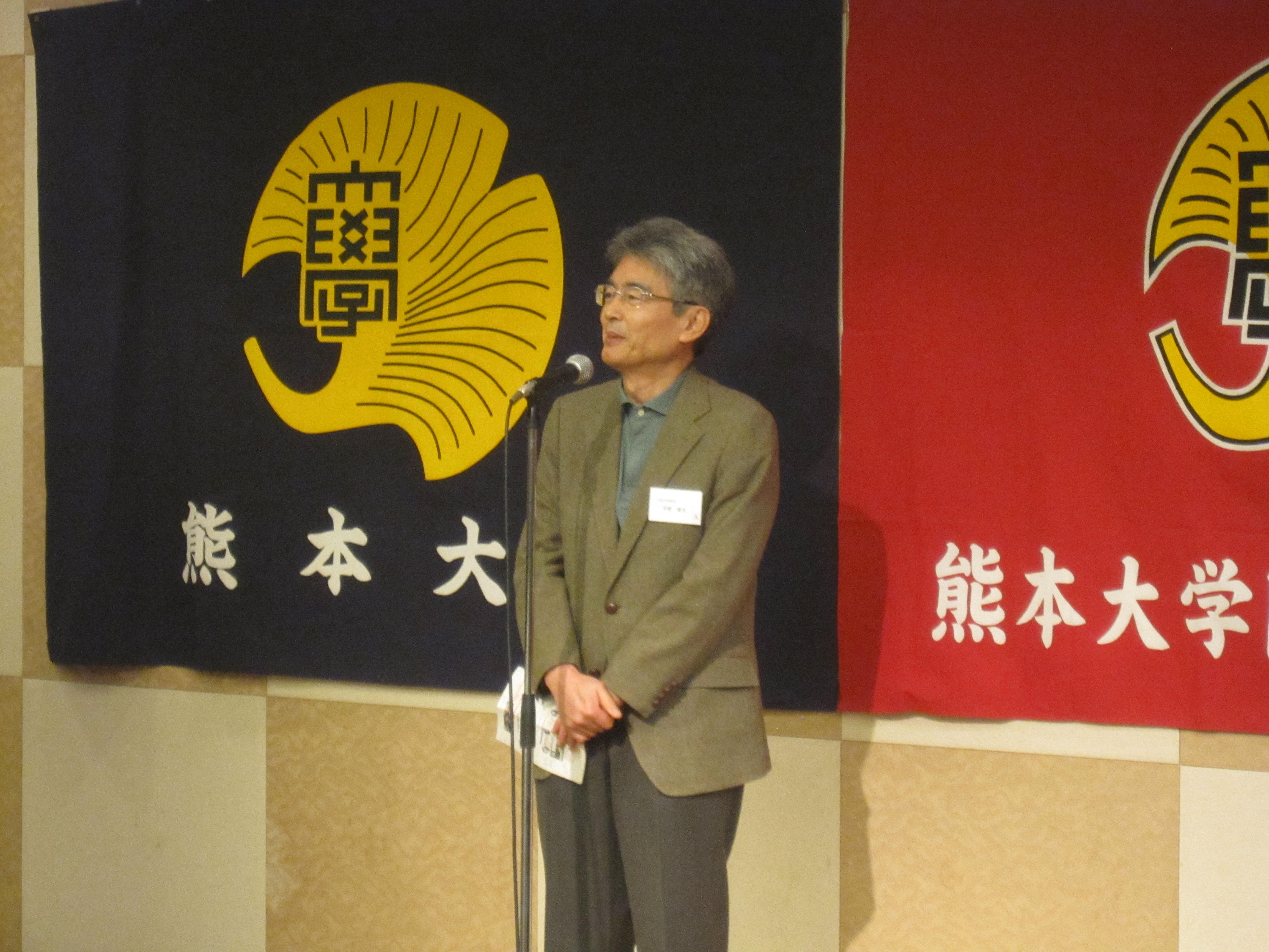 パーティー・交流会では谷口学長から「熊本大学の近況報告=100年後も輝く熊本大学に向けて=」と題して講演が有りました。