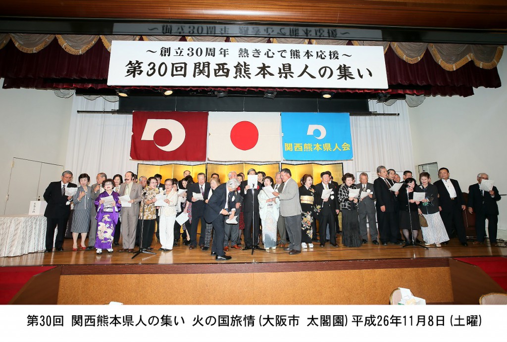 平成26年11月8日(土)太閤園にて開催された「第30回熊本県人の集い」に参加致しました。会場のダイヤモンドホールに行くと、各高校、大学、出身町等毎に受付が出来ており、開始1時間前でありながら、人が溢れかえっています。