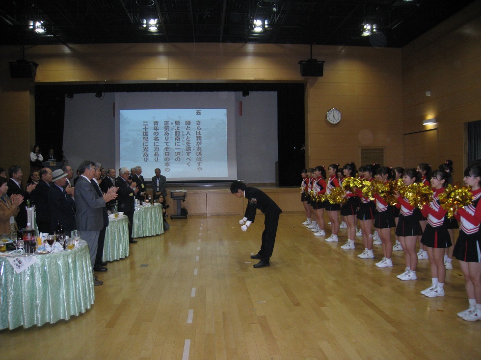 そして、華やかなチアガールをバックに伝統の巻頭言「五高寮歌」でホームカミングデーは終わりの時を迎えました。