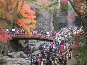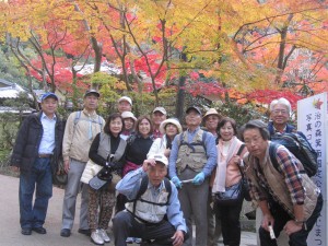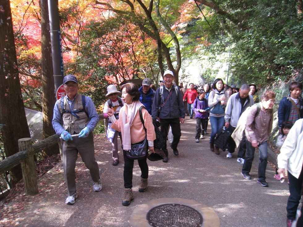 今年最後の連休とあってすごい人出で、電車の中はリュックを背負った人々で満員でしたが、無事阪急箕面駅に集合。今回の参加者は過去最高の15名。幹事は、いままで数えたことのない人数確認でてんてこ舞い。更に、今回は教育学部から2名の参加があり、さながら関西連合同窓会(11月29日に開催)のプレイベントとなりました。