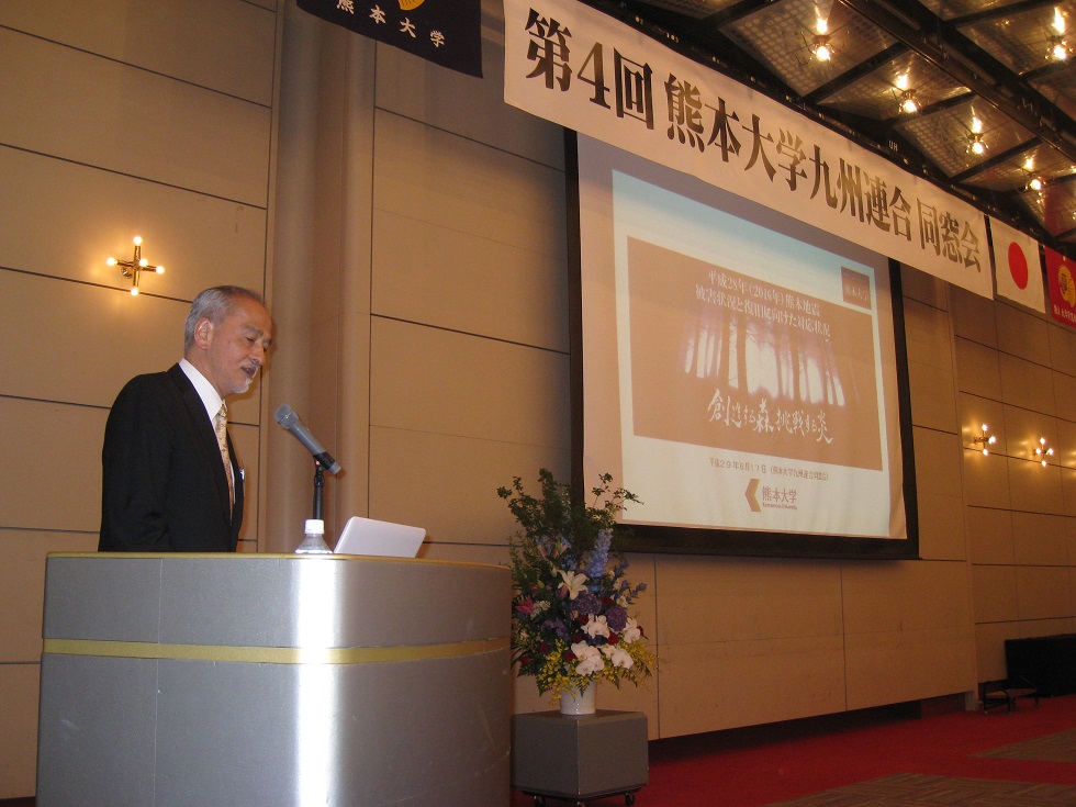 今回は原田信志学長に、五高記念館をはじめとする大学の被害状況とこれからの復興・飛躍に向けた取組み等、熊本復興についての特別講演をいただき、復興途上にある熊本、母校熊本大学に関西の地からエールを送りました。