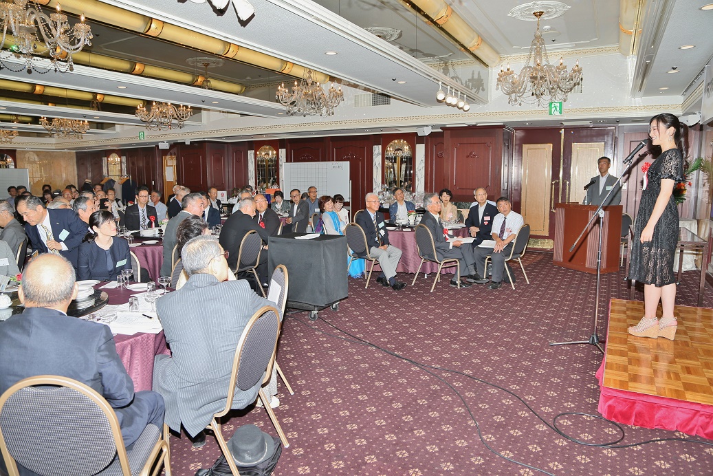今回は初参加者6名を含む100余名の参加があり、昭和28年卒の谷正道顧問から平成29年卒の西村茜さんまで幅広い世代の卒業生が集まり、昨年からのキャッチフレーズ「5縁(血縁・地縁・学縁・社縁・趣縁)」による交流の輪がさらに広がったと思います。