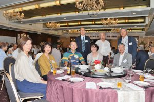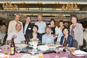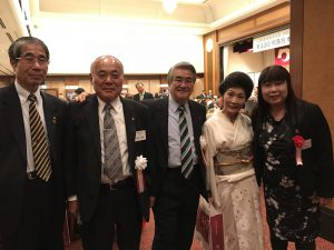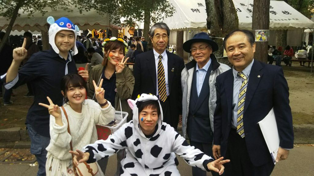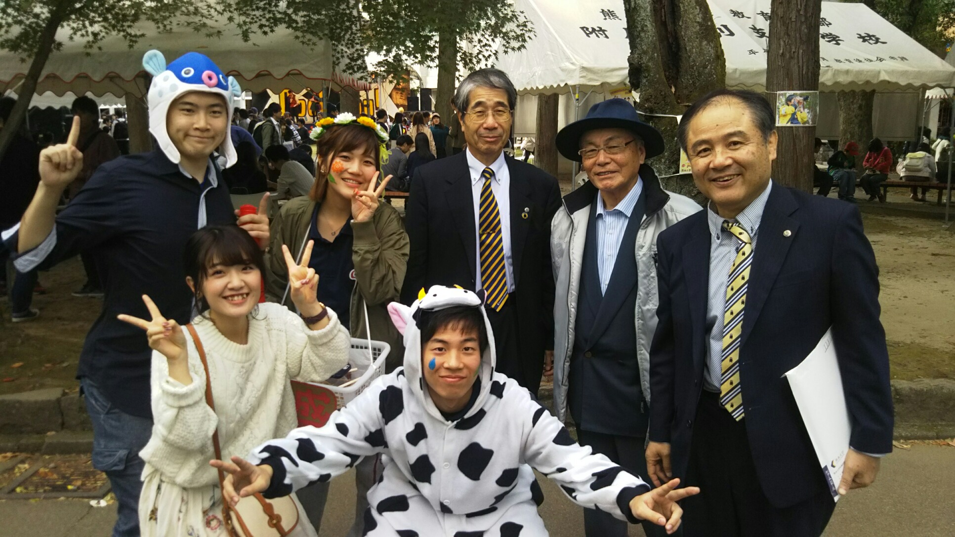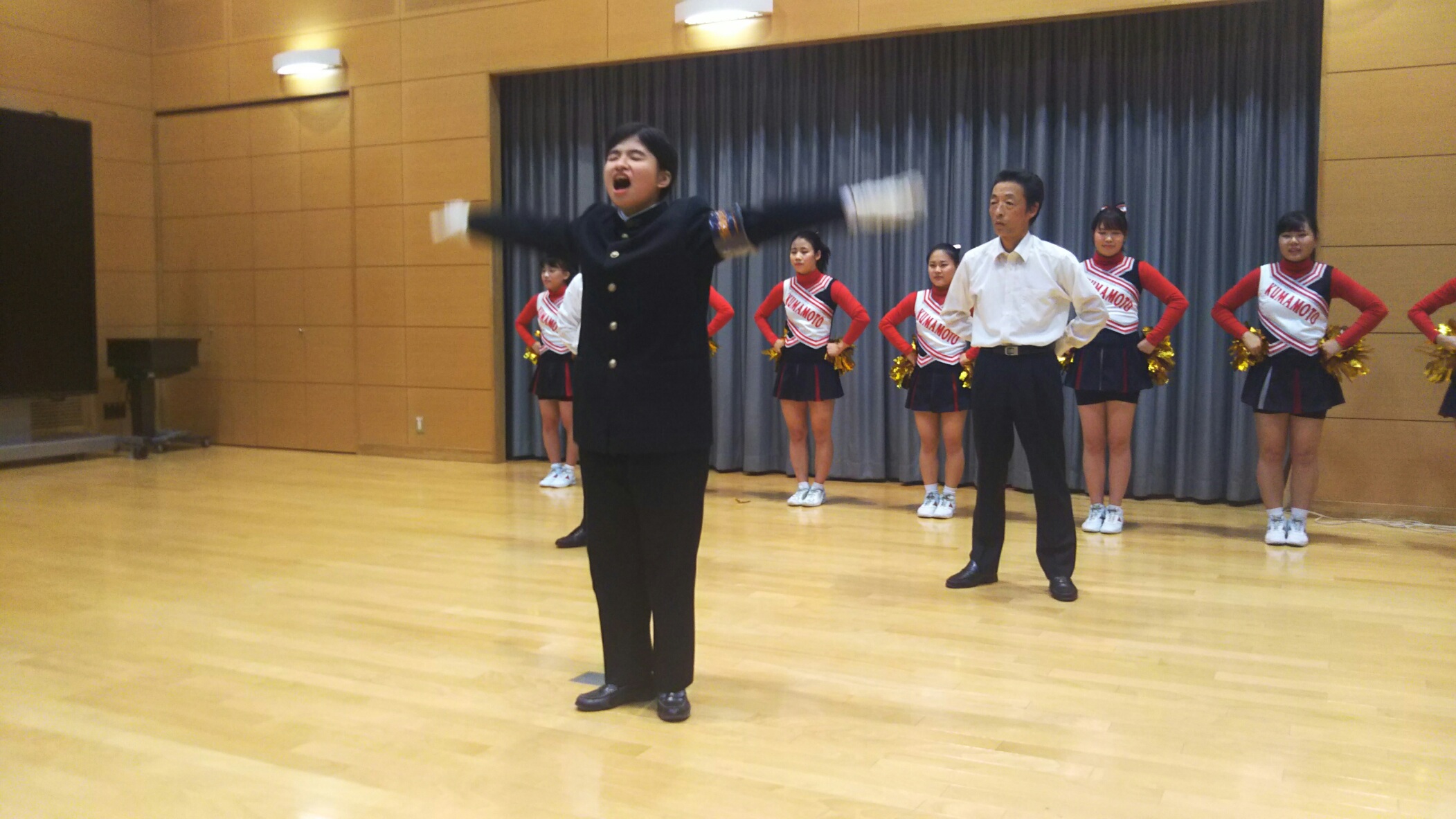その後、ホームカミングでデーのパーティーは原田学長や水元文学部長、深町法学部長らと歓談しました。宴の終盤は熊大チアリーディング部による演技が行われましたが、そのレベルの高さに驚かされました。