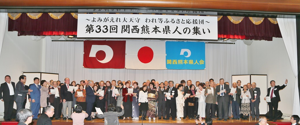 去る11月11日(土)、晩秋の気配の中、大阪「太閤園」で第33回関西熊本県人の集いが、400名近くの参加者を得て、盛大に開催されました。関西武夫原会からは5名出席しましたので、報告させていただきます。