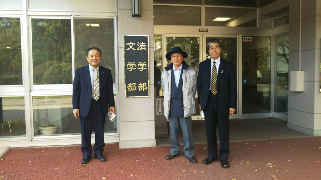 翌4日は本島会長と矢野大輔さんと私で、熊大を訪問しました。赤門から入り、五高記念館、ラフカディオ・ハーンや漱石の碑、武夫原を見学した後、法・文学部に行きました。この校舎は新しく建て替えされたようですが、昔の建物の面影のあるものです。正面玄関の階段の踊り場に「平江図拓本」があり、見学させて頂きました。