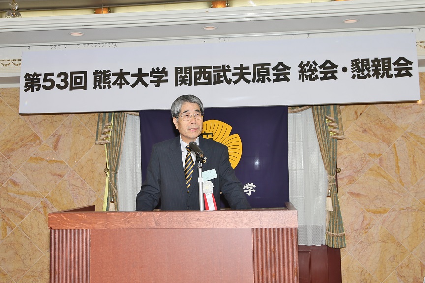 講演の最後に、基金・同窓会担当の松本副学長より、「産学連携への協力」、「地方創世へのご協力」、「熊本大学入学推進へのご協力」、「熊本大学基金への寄付のお願い」と題して、同窓会の皆様方へのお願いとして、率直にお話しされました。我々も母校の発展を願い、会員それどれの立場で協力できることを考えたいものです。