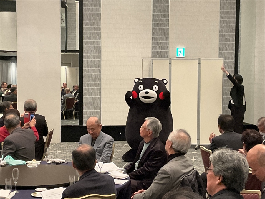 会の中では、蒲島知事による熊本の現況をPRいただいたり、くまモンによるM-1グランプリに出場したときのネタの披露があったり、また、参加者も混じっての牛深ハイヤ節の踊りあり、最後は火の国旅情の大合唱で締めくくり、今頑張っている熊本、懐かしい熊本を感じることができたひとときでした。後日、いただいた焼酎とさつまいもを美味しくいただきました♪