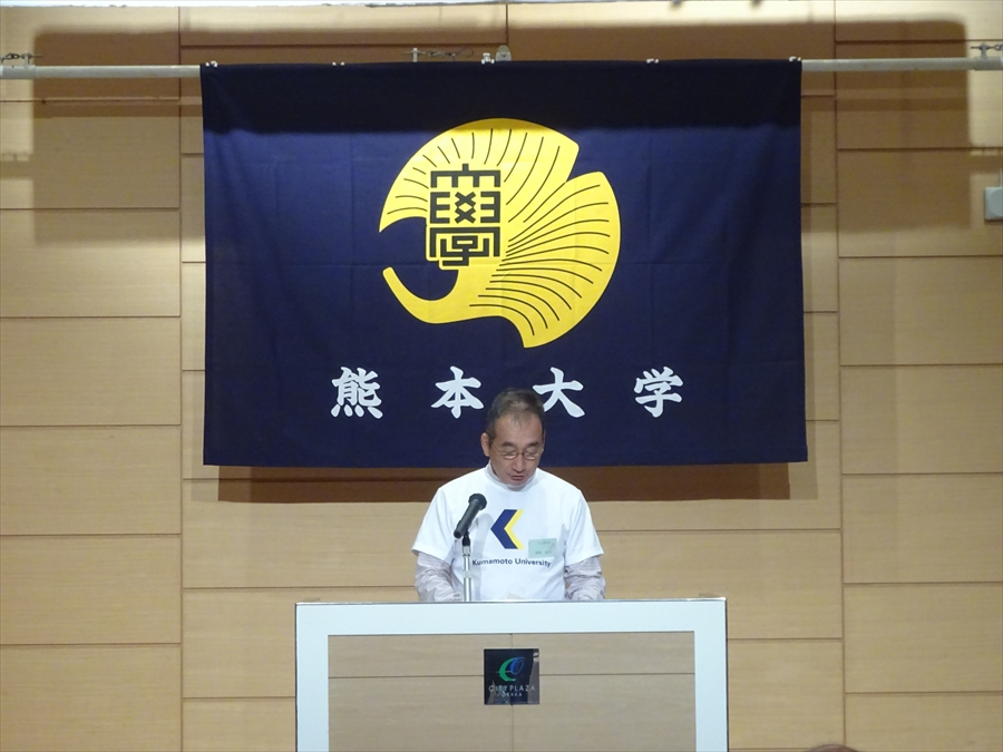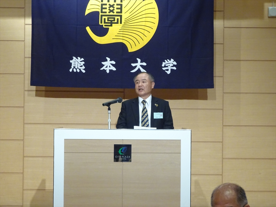 小川学長が到着され、ご挨拶と共に熊大の現状と未来についての貴重なお話をお伺いすることができました。続いて水元理事・副学長、伊藤文学部長、大日方法学部長よりご挨拶を頂きました。
