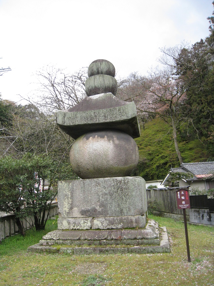 先に八幡さんの方に行くことにしました。この「男山」と呼ばれている一帯にも桜はかなりありますが、こちらはやはりお参りが主になりますね。初めに見たのが、神應寺横の五輪の塔。高さが6メートルもある巨大な塔で、重要文化財だそうです。みんなで見上げている時、Oさんが「これは2020年に東京に持って行くことになっていまーす」と言いました。それを危うく信じてしまいそうになって、「ああ、ゴリン(五輪)、オリンピックか」と気付き、大笑い。その後も、このようなダジャレを互いに連発しながらの愉快な1日でした。