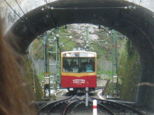 私たちが高良社の境内を抜けて、表参道を上院社殿の向けて歩き始めた頃に、ポツリと来ました。長い石段は意外ときついし、雨には会うし・・・。それでも周りを見れば、石段に添った山肌には愛らしいスミレ、目を上げれば赤い椿。すれ違う人たちは「もう少しですよ」と声をかけてくれます。