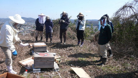 さて、その活動の一環として数名の仲間と共に蜜蜂を飼うことになりました。この三月。指導者に試験的に巣箱を2つ置いてもらい、飼い方を教えていただくことになりました。