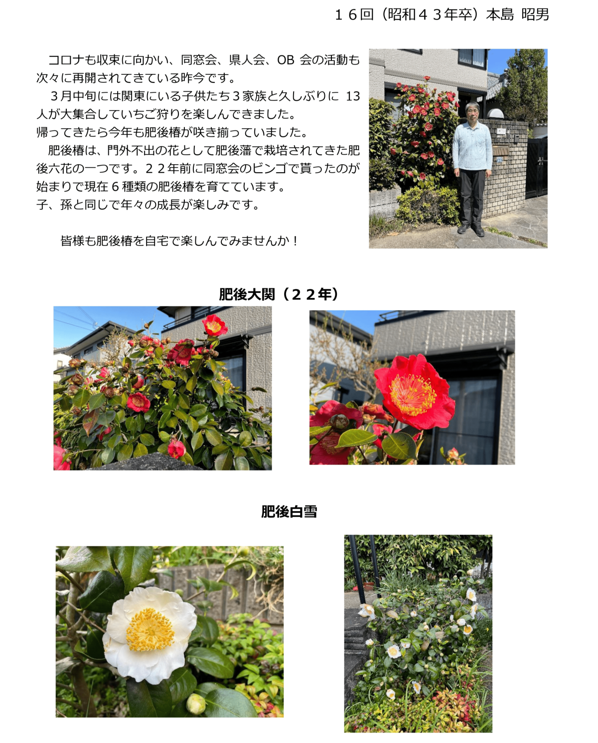 大学卒業後に、実家が転居したこともあり、武夫原会との縁も途絶えておりましたが、このご縁で再び熊大の諸先輩方と交流させて頂けることになったことに、心より感謝しております。