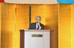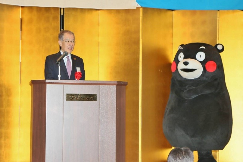 来賓として登壇した田嶋徹熊本県副知事は、震災から2年半が経過し着実に復興が進んでいるものの、未だに、2.5万人が仮設住まいであること、国道57号線や豊肥線の復旧がまだであることも報告されました。更に、熊本駅周辺の再開発が進んでおり2021年には新駅舎に建て替わることや交通センターの複合施設が来年秋にオープン予定で陸・海・空の玄関口の整備が進んでいるとの話がありました。