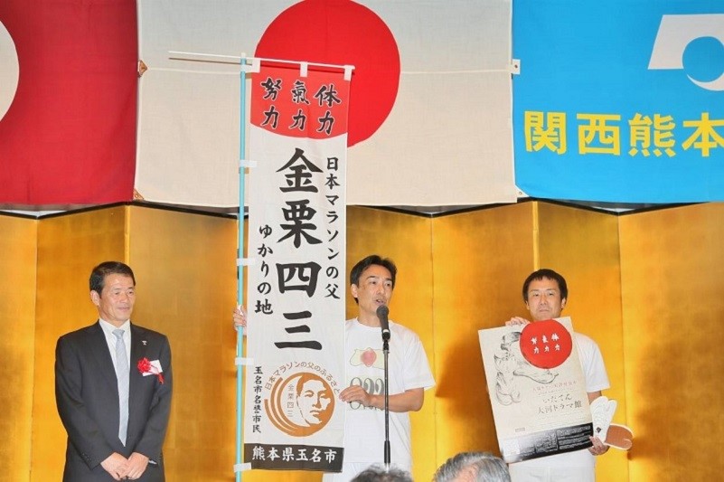 また、来年のNHK大河ドラマが熊本出身のマラソンランナーで「日本マラソンの父」と称される金栗四三を取り上げたものになるとの話も披露されました。八代生まれの「奇跡の4オクターブ」と言われる声楽家本岩孝之さんのミニコンサートを楽しんだ後乾杯、懇親会に移りました。