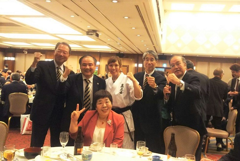 また、信愛女学院出身で今年の関西武夫原会総会に五縁参加してくれた元2年連続世界女子空手チャンピオンの谷山佳菜子選手が12月1日にボクシングデビューするということで舞台に上がり盛んに声援を受けていました。