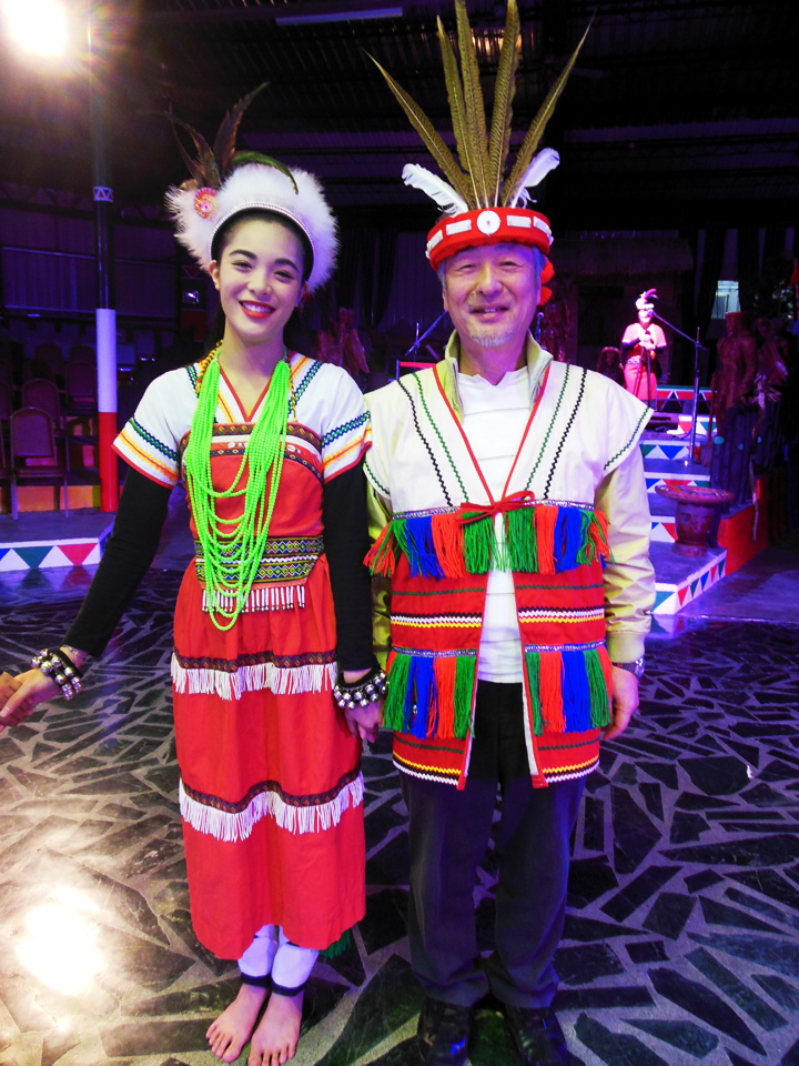 アミ族ショー見物に来たのに古田 さんはショーに飛び入り参加し て、見事な演技で拍手喝采。アミ 族のプリンセスとツーショット。 |