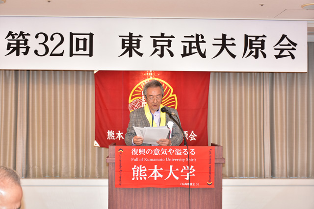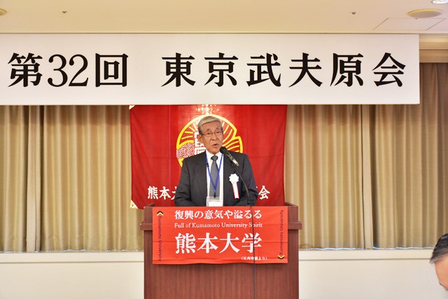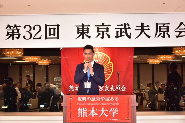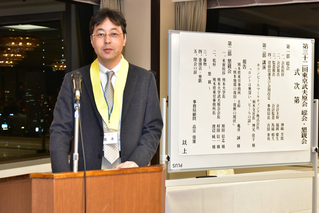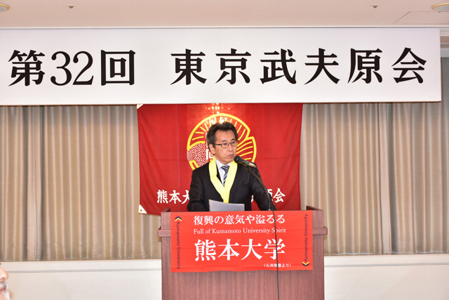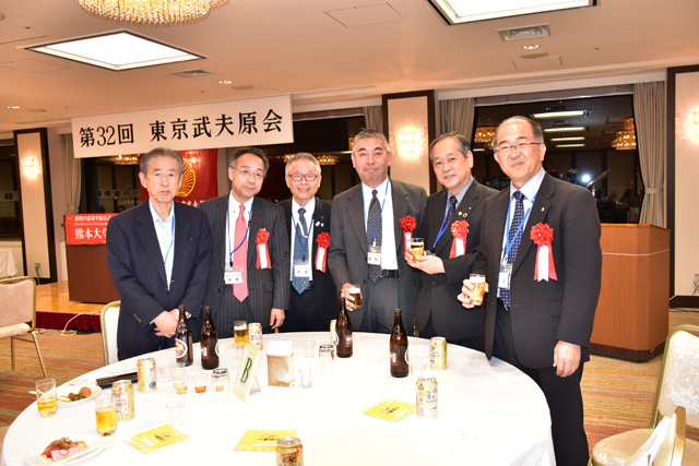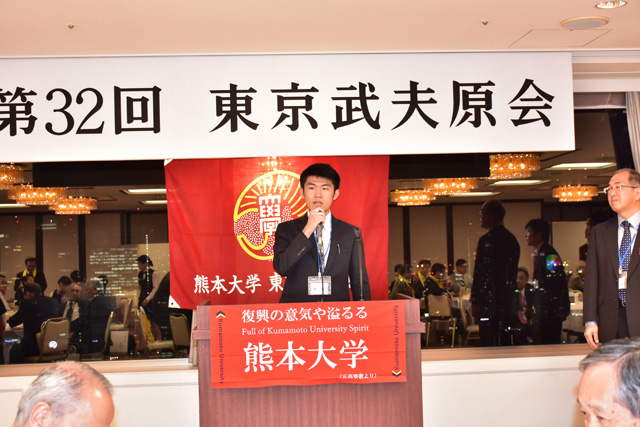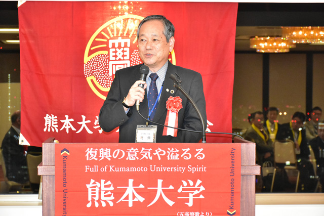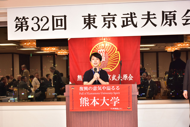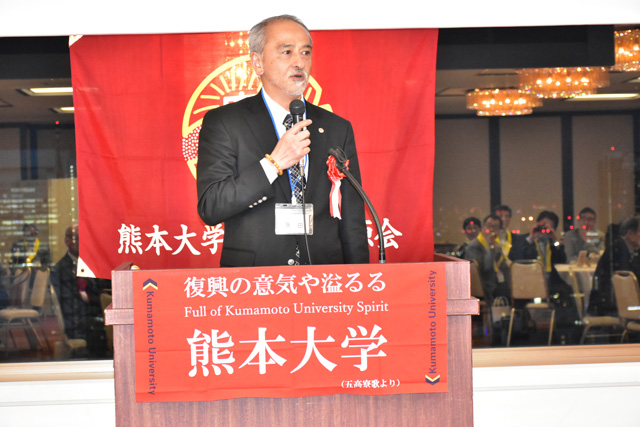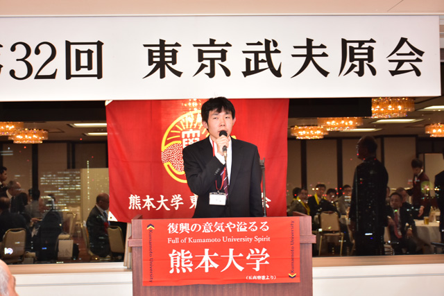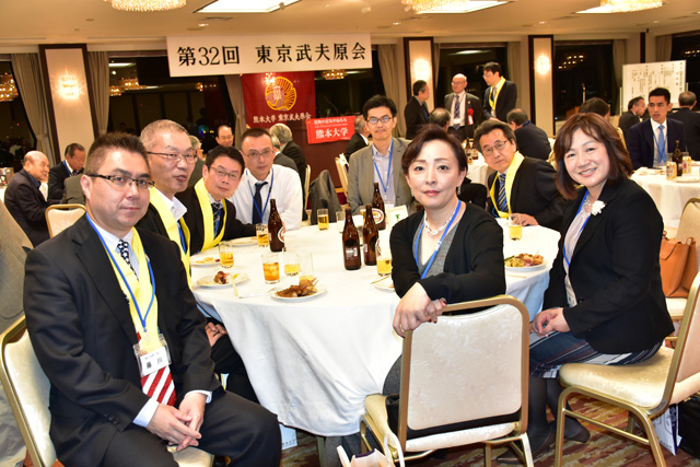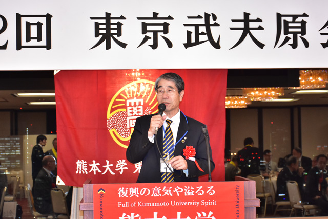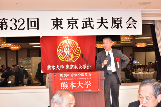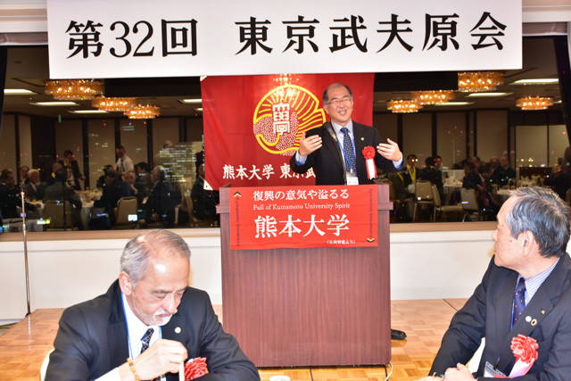 第3部の懇親会では、熊本大学の原田学長はじめ来賓の皆様の挨拶があり、熊本県東京事務所の渡辺所長様の乾杯の音頭で乾杯をし、各テーブルでは和やかな歓談の輪が広がり旧交を温め合うひと時を過ごしました。