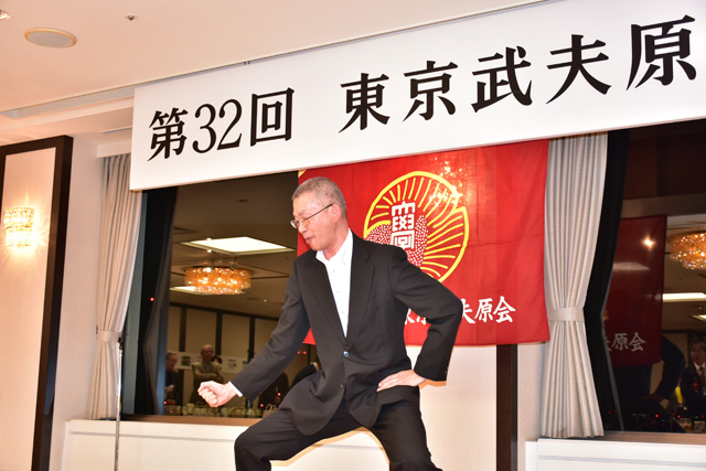 第1部の総会の冒頭に、主催者を代表して神崎会長から、本年4月の熊本地震に被災されたかたがたへのお見舞いの言葉と会員のみなさまからの義援金のお礼の言葉がありました。引き続き、本会だけでなく武夫原会全体の課題である会員を増大・活性化のための緊密な連携が必要であること、そのためには特に比較的若い年齢層からの参加を促すための本部と各地域の武夫原会とのよりいっそうの連携強化が求められることなどの提案がありました。それに続いて、会計報告、監査報告の他役員改正、会則改訂の提案があり、全員の賛同を得て議決されました。