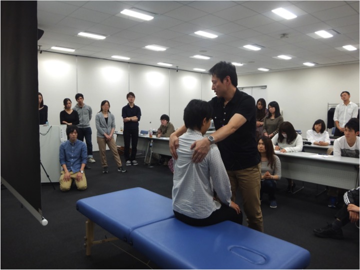 この度、(株)PNF 研究所の江口泰弘先生に 「基本動作への介入方法について~触り方・声 掛け・からだの使い方を変えれば反応が変わる ~」というテーマで講義をして頂きました。江口先生は国際 PNF 協会認定セラピストとして、 脳卒中後遺症・整形疾患・ダンサーなどの芸術家等、多様な利用者さんを対象とされております。今回はそんな江口先生に明日の臨床からすぐに使える知識・技術について講義して頂けると聞き、非常に楽しみでした。講義内容は実に臨床的であり、実践的な内容でした。患者さんに不快感を与えない触り方や声掛けのトーンを変えることにより、得られる 反応が変わることを実感できました。私の勤務する病院では脳卒中の患者さんが多く、中には意思疎通をとることが困難な患者さんもたく さん担当します。そんな方に対してもこれらの触診・声掛けの仕方ひとつで、得られる反応が大きく変わることを毎日のように実感してい ます。小さな心がけで患者さんの反応は大きく変わり、これらは理学療法を実施するにあたって大きな武器となっています。触診や声掛けの仕方などは、学校教 育の中だけではなかなか実感が湧かず、参考書を読んでも実践に繋げにくい内容であるため、今回の講義は非常に有意義なものとなりました。