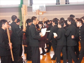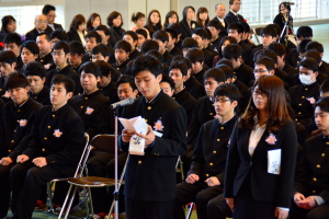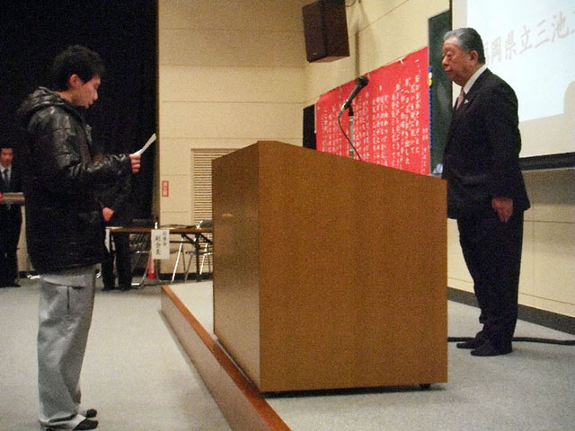 式終了後に三池工業高等学校の恒例になった卒業生による保護者への謝辞