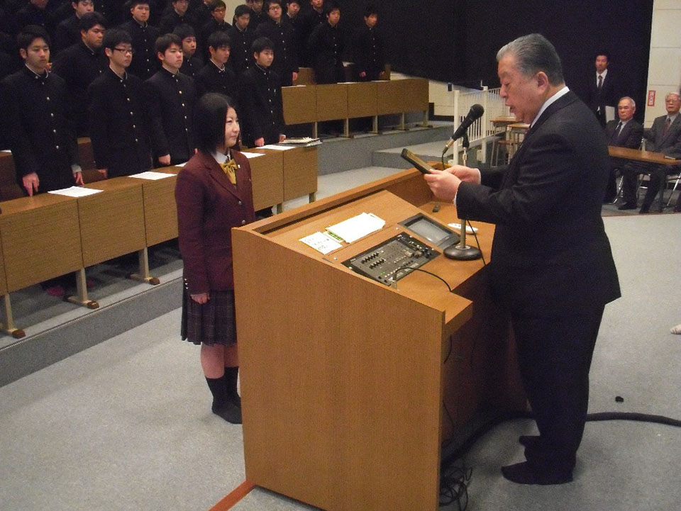 厳かな空気の中、卒業生を送るため来賓の方々、卒業生の保護者、第2学年の生徒達も参加して、とても素晴らしい卒業式が挙行されました。