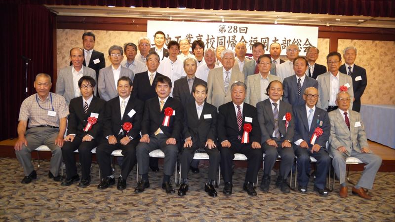 本部より黒田副会長・高村幹事・関西支部から西原会長・西谷副会長・古閑幹事・学校から5年ぶりに猿渡校長と下川教諭の来賓7名・福岡支部会員26名計33名の出席でした。