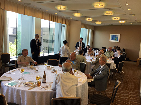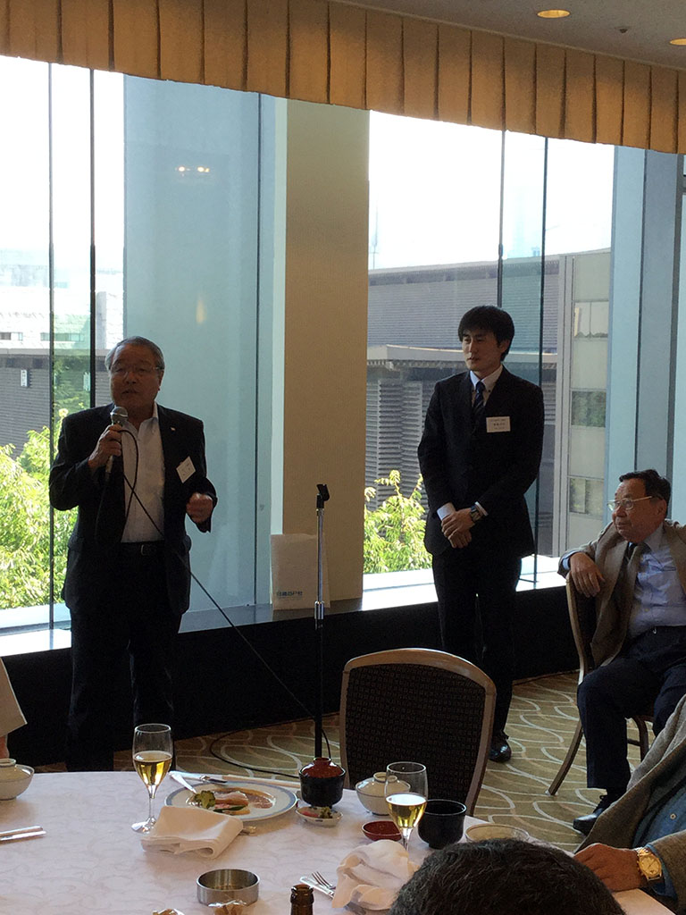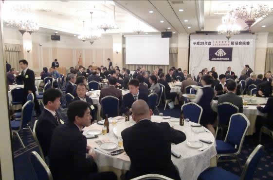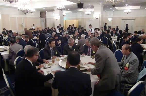 大佐古幹事のもと記念写真撮影が粛々と執り行われ、懇親会は境副支部長の開会で進行司会の吉澤幹事より来賓紹介(7名)あり、関西支部の西谷副会長の来賓挨拶では他遠隔支部同様会員の増強に役員一同頭をかかえ 本部・学校の協力なしでは尻つぼみになりかねない旨の話がありました。