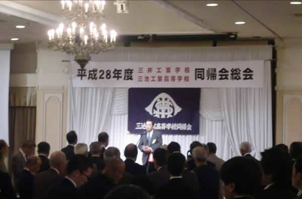 日髙事務局長の総会開催宣言で始まり4人の物故者(杉野俊幸S17年化・斉木博磨S27年採・小川實S26年機・壇朋明S27年電)と昭和40年第47回全国高等学校野球選手権大会で優勝監督の原貢氏(H26年5月29日逝去)に対し黙祷を捧げました。(ご冥福をお祈りいたします)
