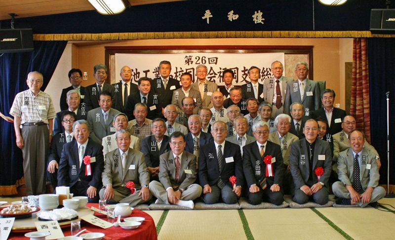 私立三井工業学校県立三池工業高等学校、福岡同帰会会員の皆様本日は御多忙中にも拘らず福岡支部総会に多数御出席頂きましてありがとうございました。会員皆様方の御指導と御協力のお陰で福岡支部も昭和61年結成以来今日平成22年6月27日で第24回を迎えることが出来ました。改めて厚く御礼申上げます。本日大牟田市本部から大佐古会長外高村、黒田両役員と学校から田中校長、吉田先生の御出席を頂きありがとうございました。又関西支部との交流も今回で第3回目を迎える訳ですが、奈良岡会長、西谷副幹事長(京都医療科学教授)お二人の御出席を頂きありがとうございました。