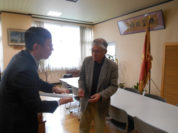 今回の母校訪問は、電気科の取り組みでもあります「特許取得を目指して!」として、課題研究の時間に生徒が「まだ世の中にないモノを作り上げ、特許取得を目指す」という目標を掲げております。そのことに関心を持っていただき、是非後輩達が頑張っているのだから是非役立てて欲しいということで「御浄財」をいただくことと成りました。
