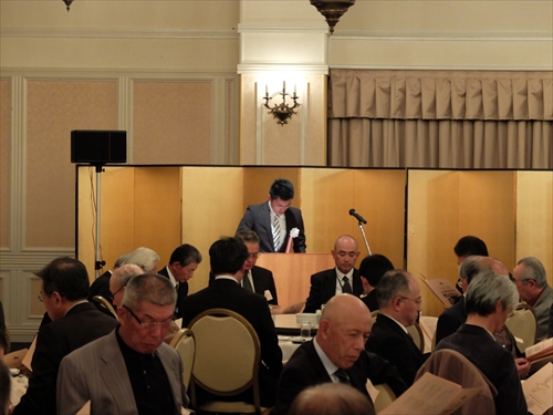 総会は18時30分から始まり、物故者への黙祷の後大佐古会長よりご挨拶をいただき、平成25年度活動・収支決算報告及び平成26年度活動計画・予算が報告され、承認されました。