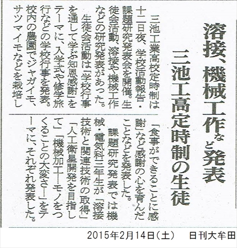 平成27年2月12日(木)に定時制の課題研究発表会が行われました。