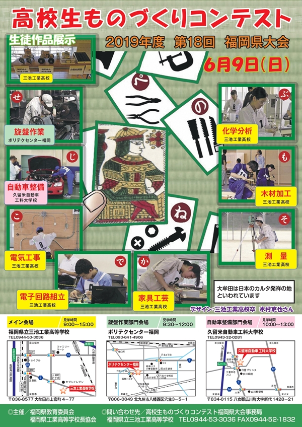 今年度は昨年度に続き三池工業高等学校・ポリテクセンター福岡・久留米自動車工科大学校にて開催されます。