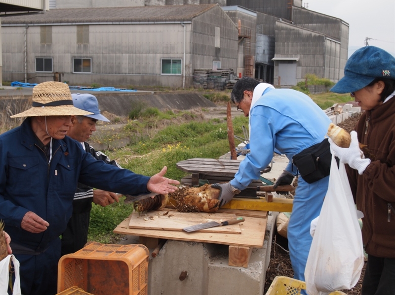 場所は濃施山公園近辺にて沢山の方々の参加の下、タケノコ掘り・タケノコをゆがきました。一日の作業でみんなヘトヘトに成りながらも楽しい時間を過ごすことができました。