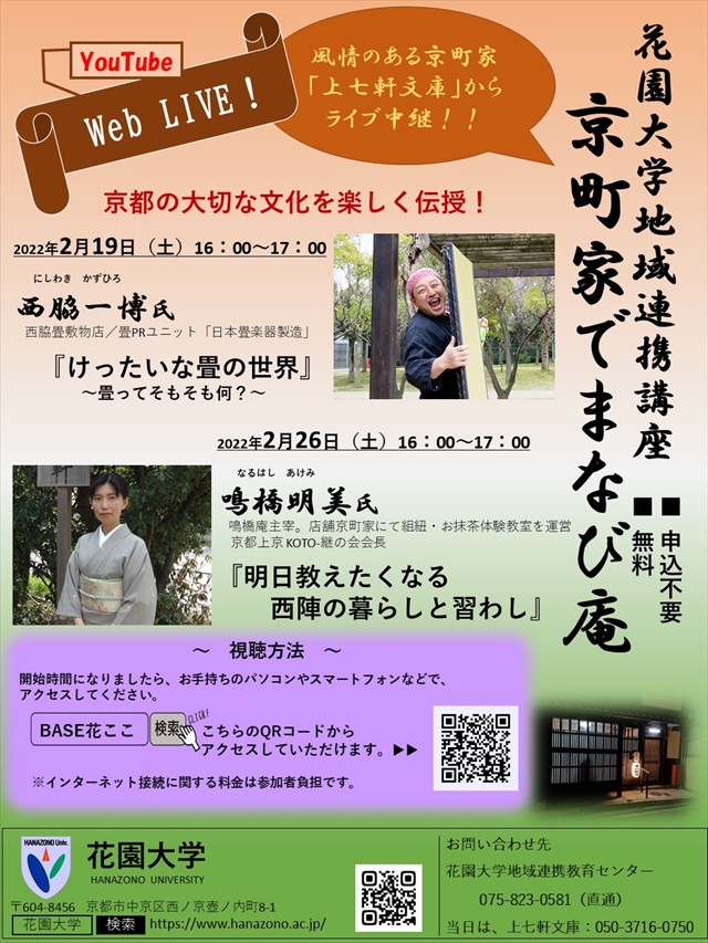 《YouTube LIVE》地域連携講座「京町家でまなび庵」