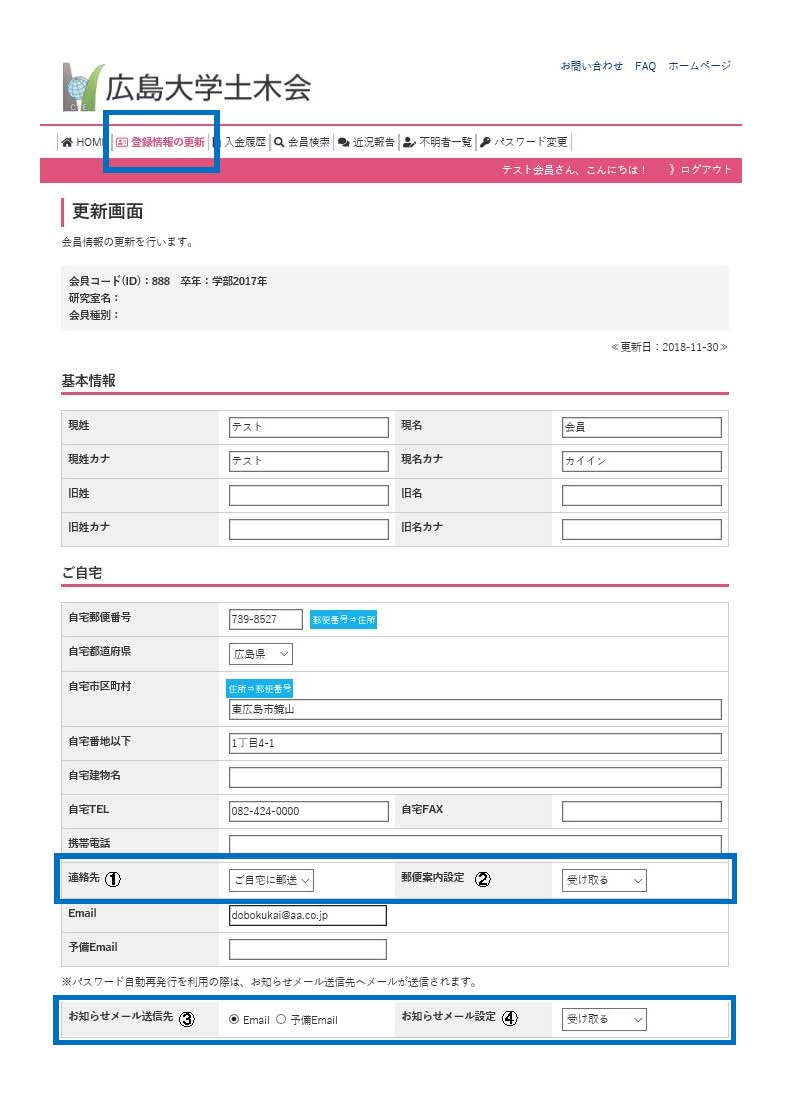 事務局からの郵便案内・お知らせメールの受取可否設定について