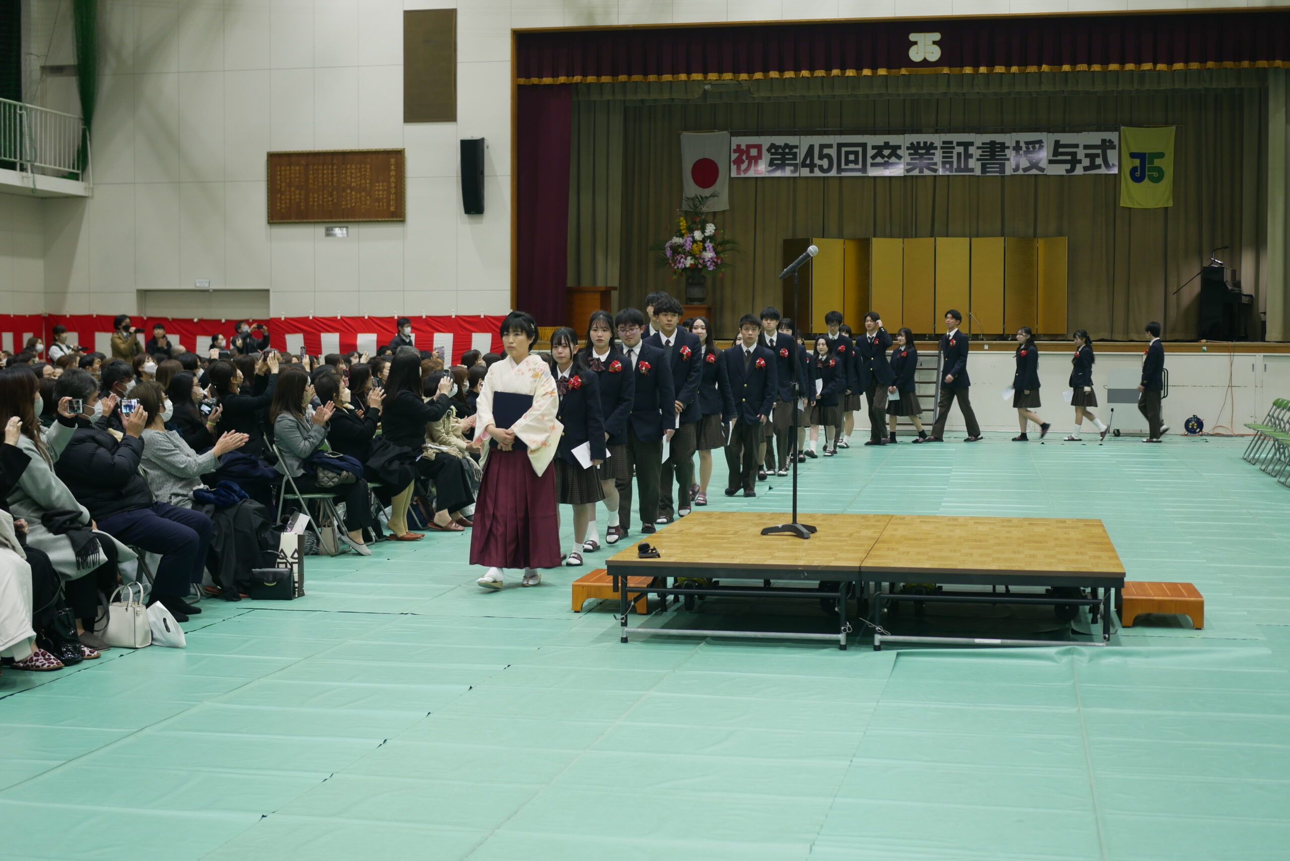 お知らせ トップページお知らせ第45回卒業式 お知らせ お知らせ 2023年3月30日 第45回卒業式 2023年2月28日(火)茨木西高校体育館にて第45回卒業式が執り行われました。 本年度は、45期生263名が同窓会寄贈のコサージュを胸にすがすがしく卒業していきました。 同窓会として、今後のさらなる活躍を期待いたします。 Share:Tweet