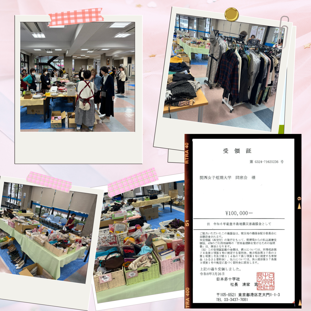 2025年10月25日(土)関西福祉科学大学及び関西女子短期大学の学園祭 “VIVA FESTIVAL”が学生達によって盛大に開催されました。関女同窓会も毎年恒例のチャリティーバザーで参加しました。地域の皆様や学生やそのご家族、短大の教員、学園関係者の方々など、今年も多くの方が訪れ多くの商品を購入してくださいました。