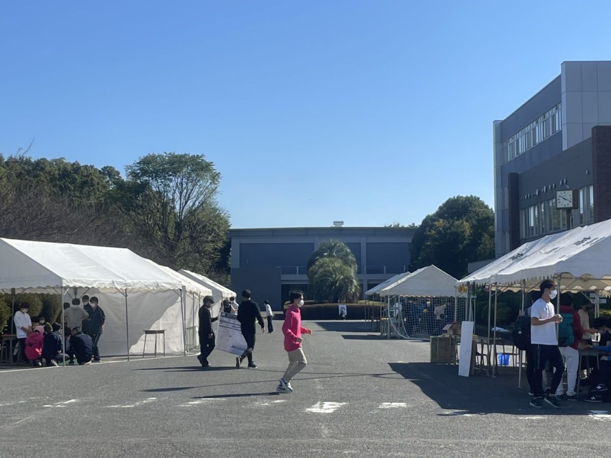 朝早くから執行部を中心にたくさんの人が集まり、会場の設営に取り掛かっていました。一号棟隣の駐車場では、一つ、また一つとテントが建ち、楽しそうな声が聞こえてきました。