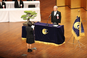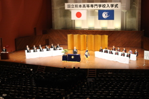 2018年4月5日、熊本県立劇場コンサートホールにおいて、第9回入学式を挙行しました。熊本キャンパスには128名の本科入学生と31名の専攻科入学生、八代キャンパスには128名の本科入学生と28名の専攻科入学生を迎えることとなりました。さらに、両キャンパス合わせて、本科4年次編入1名および3年次への留学生5名を迎え、合計321名の入学生が一堂に会しました。式典では、ご来賓の方々を始めとして、保護者、教職員、在校生が見守る中、入学生が誓いを述べました。