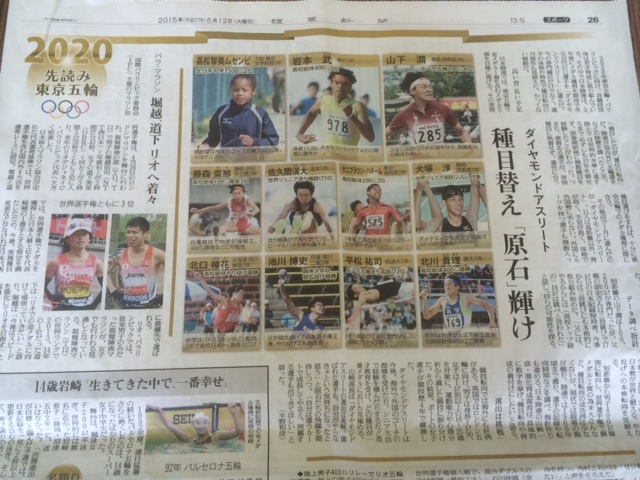 5月12日(火)読売新聞のスポーツ面で2020年の東京五輪での活躍が期待されるダイヤモンドアスリートとして大きく取り上げられました。